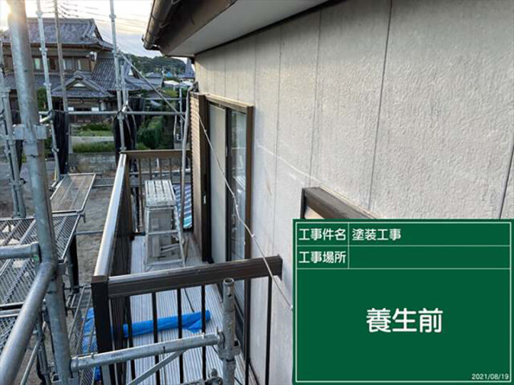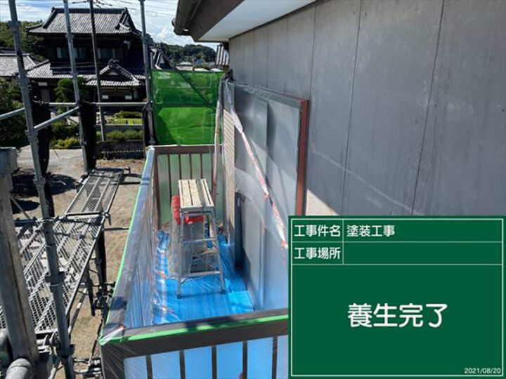 塗装前の養生の様子もご覧ください。