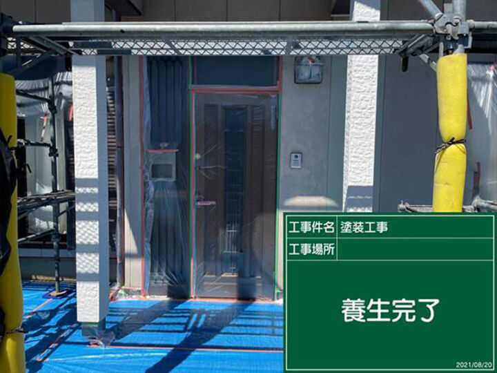 玄関まわりと同じようにマスカーやシートで養生をおこないます。