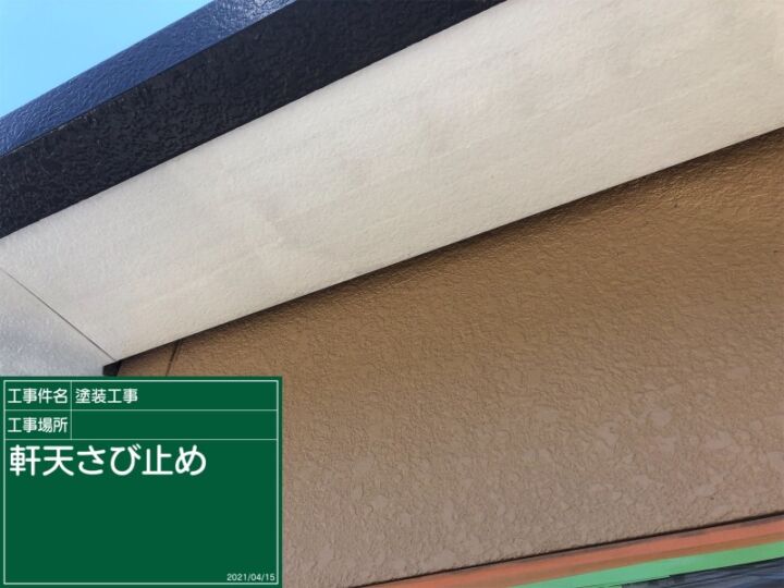 軒天の塗り替えが完了しました。