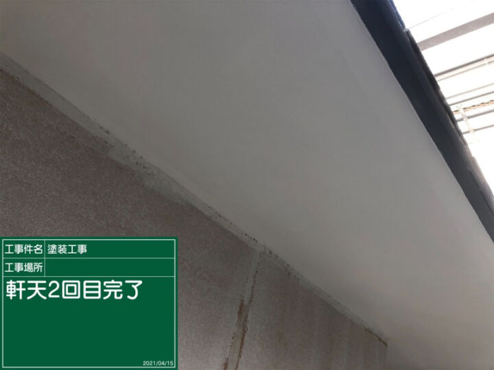 軒天の1回目の塗替えが完了しました。