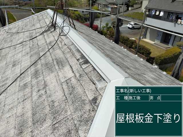 遮熱効果のある下塗り材、サーモテックメタルプライマーで、屋根板金の下塗りが完了しました!