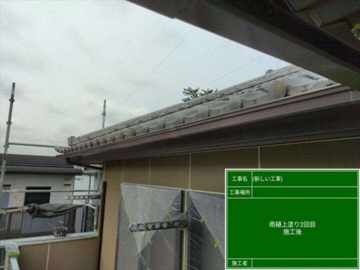 今回のブログでは、軒天と雨樋の塗装のようすをご覧ください。