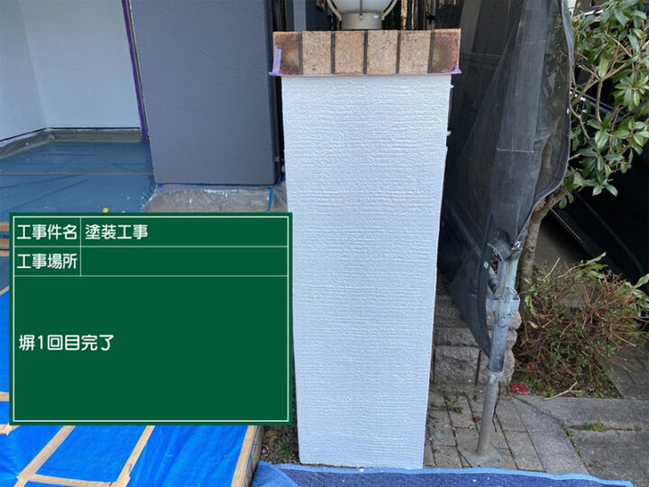 塀は外壁と同様に、塗装面と上塗り塗料との密着性を高めていくために下塗りをおこないました。