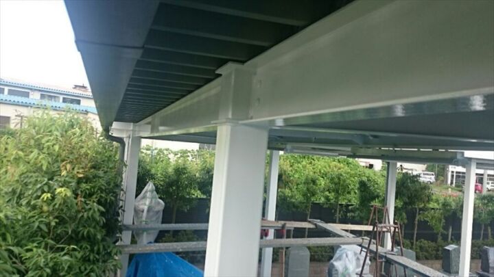 建造物の外側、屋根の納めの部分の塗装です。