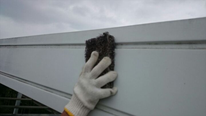 続いて、マジックロンと呼ばれる研磨用たわしを使ってケレンと呼ばれる下処理を行っていきます。