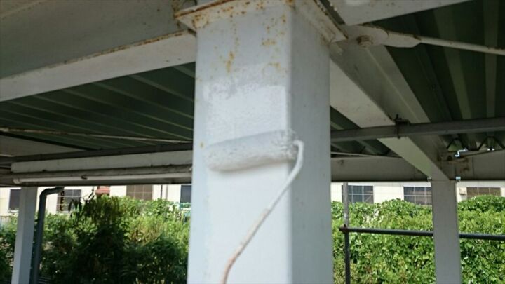 建造物を支える重要な部分になるので、塗装によって腐食を防ぎ、建材を補強しました