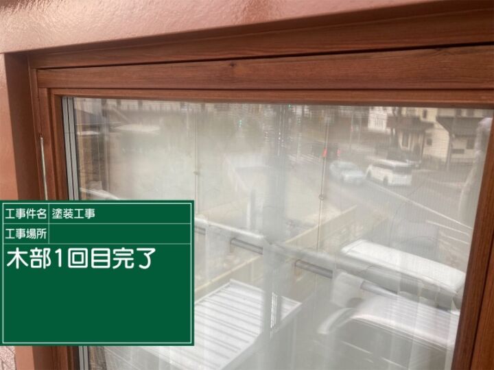 土浦市の木部バルコニー塗装、1回目の塗装が終わったところです。