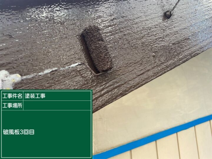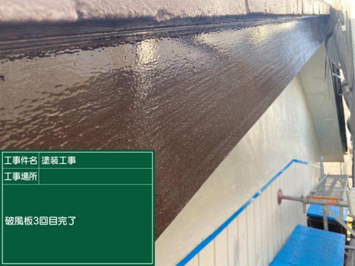 木製の破風板の劣化が大きく塗料をどんどん吸っていってしまうので、3回塗料を塗り重ねることにしました。