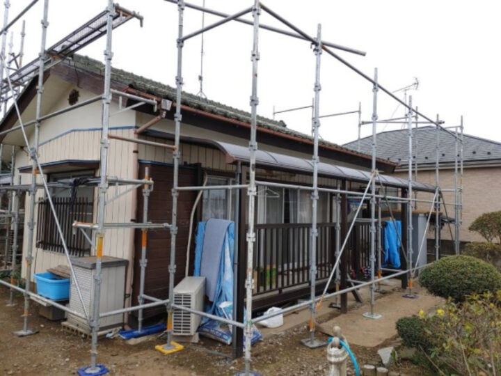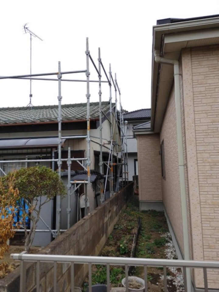 足場を設置するため、家屋の周囲をチェックしていきます。