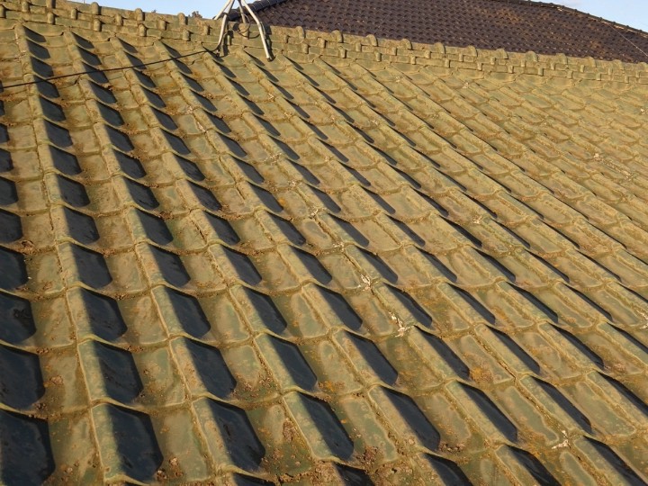 和瓦は陶器でできており、半永久的にその性質が変質しないメンテナンスフリー素材ですが、コンクリート瓦は塗膜が劣化すると表面に藻や苔が発生してきてしまいます。