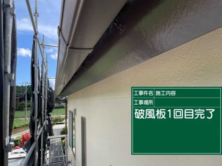 土浦市現場、破風板の1回目の塗替えが完了しました。