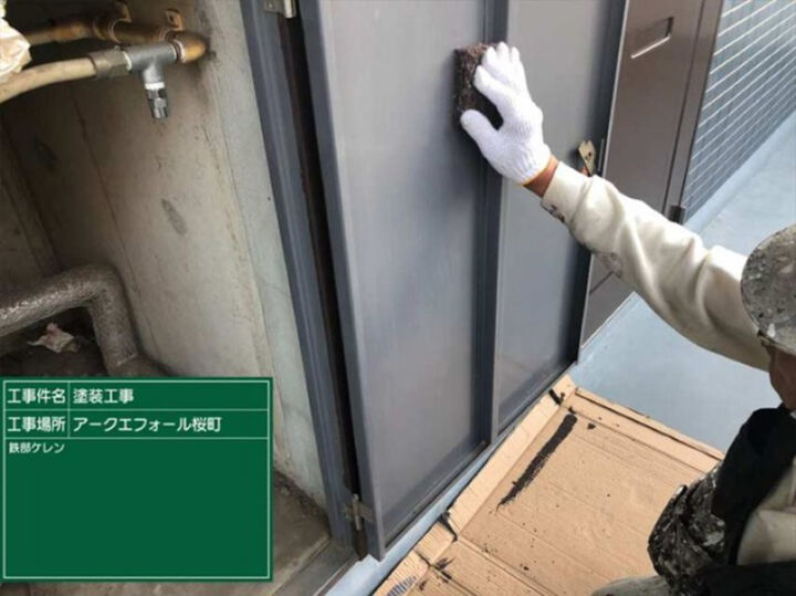 写真は塗装前におこなうケレン作業(目荒し)の様子です。