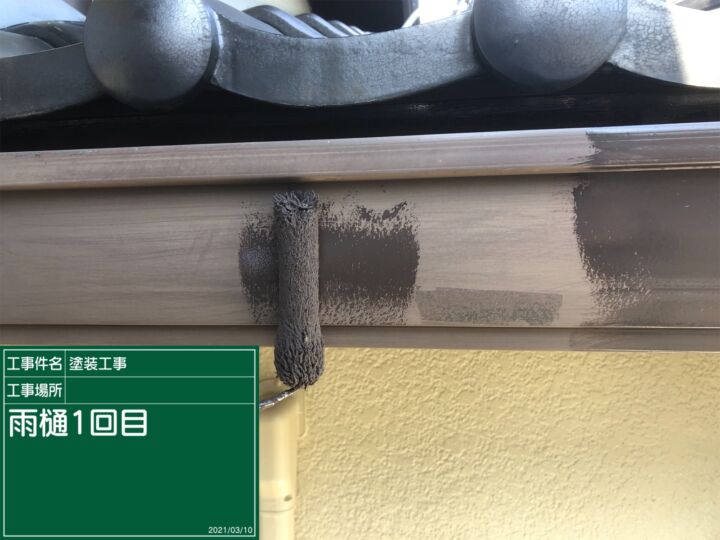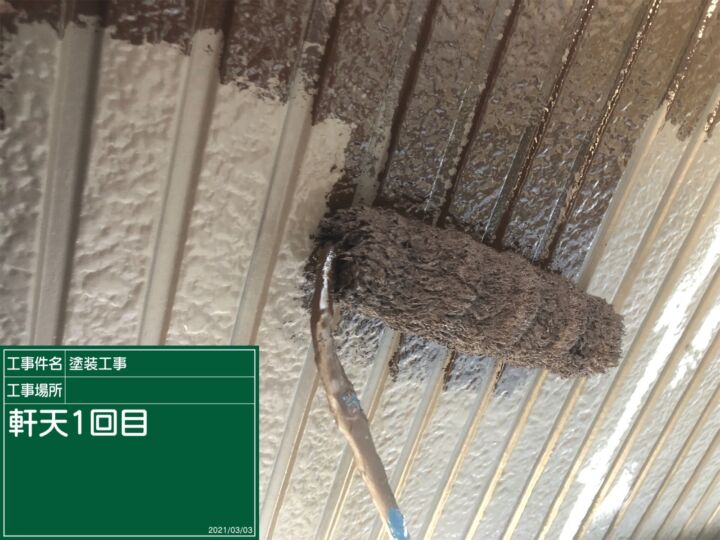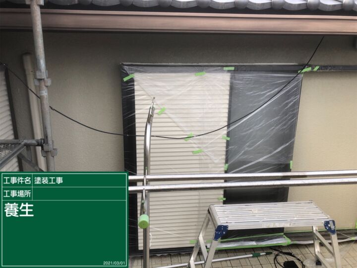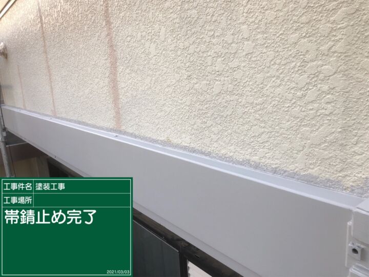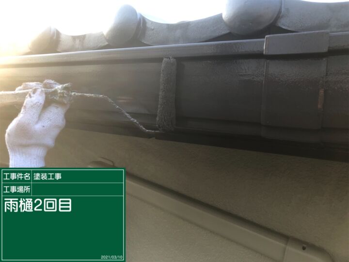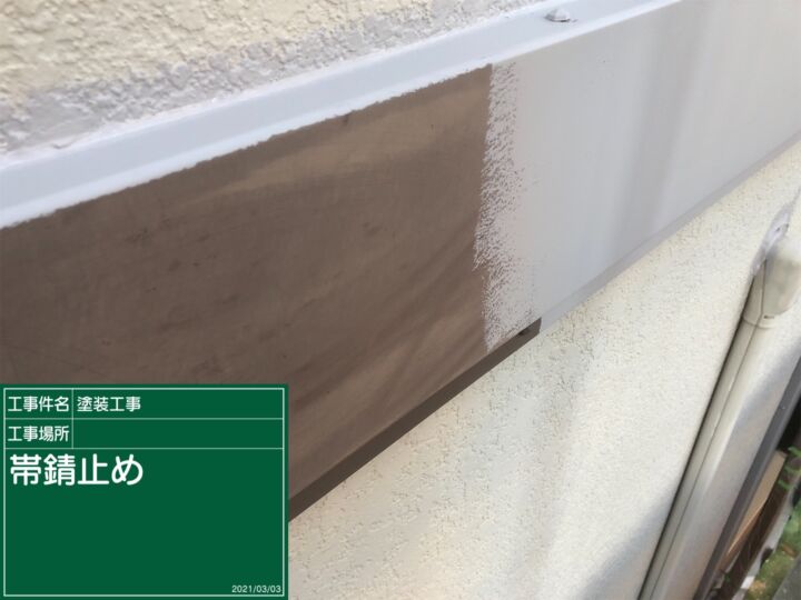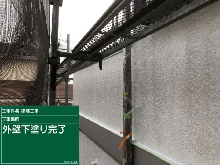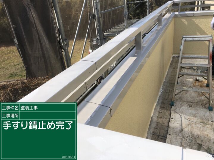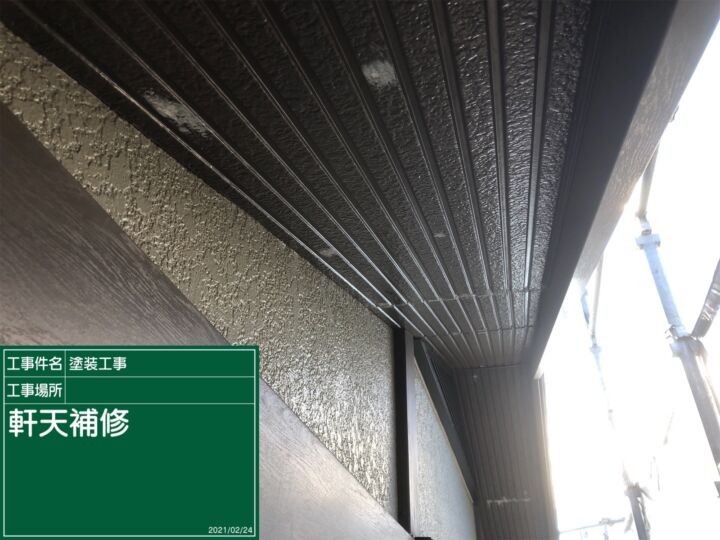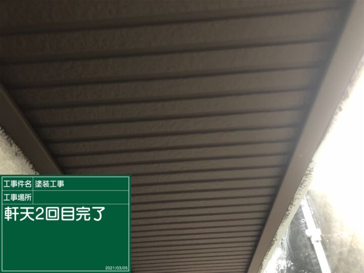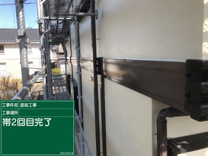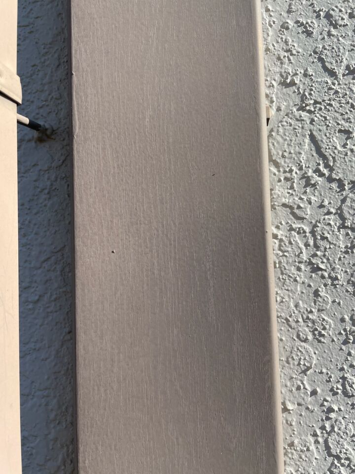 - 《外壁》ホワイトフィラーA(下塗り)超低汚染リファイン1000MF-IR(上塗り)、《軒天》マルチエース、《破風板、帯》エピテックプライマー(下塗り)無機UVコート(上塗り)、《鉄部》マルチプライマーエポ(下塗り)無機UVコート(上塗り)、《雨樋》無機UVコート、《シーリング》アステックシール、《アルミ手摺》サーモテックメタルプライマー(下塗り)フッ素UVコート(上塗り)