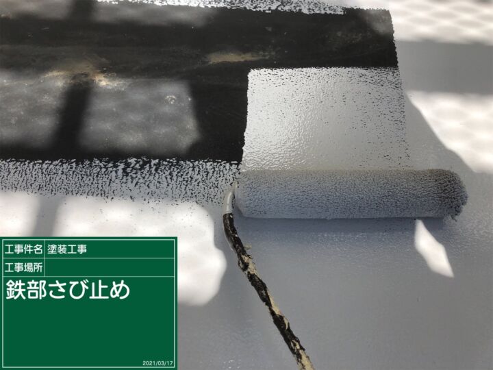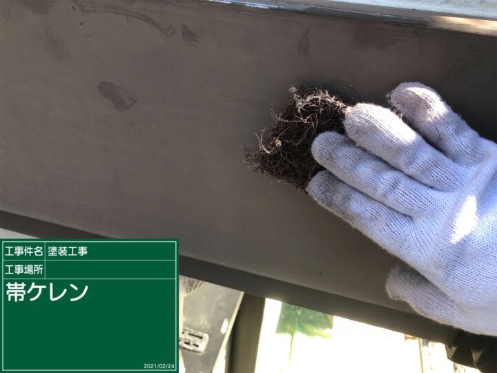 ケレンたわし等を使用して、サビや汚れ・古い塗膜を落とし下地を整えます。