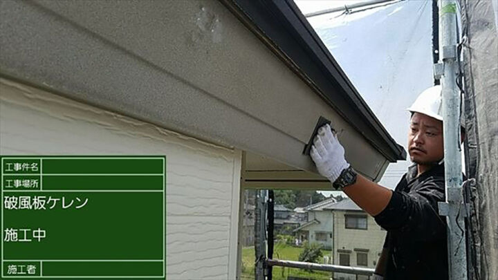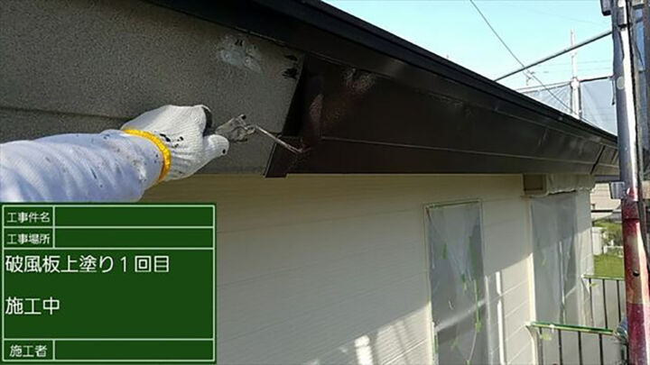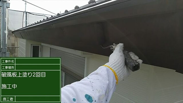 破風板上塗り2回目の様子です。