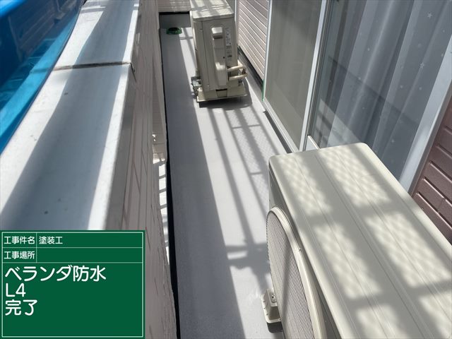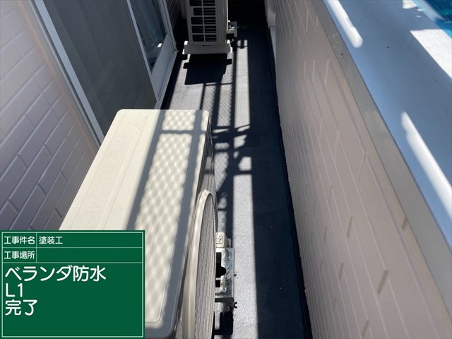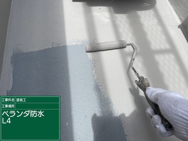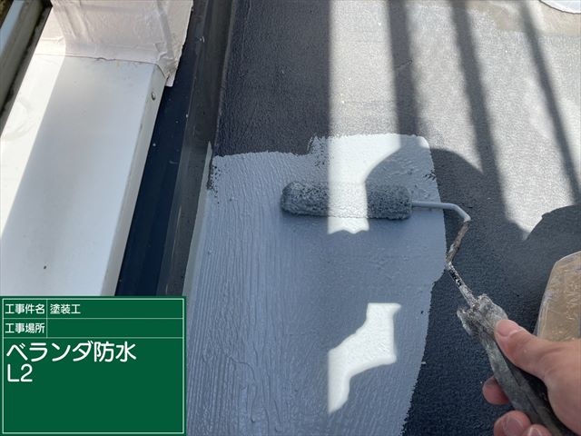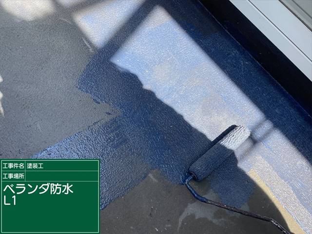石岡市ベランダの防水塗装にはリボール式防水をおこないます。