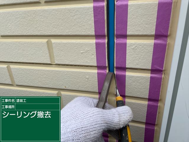 外壁塗装の前にシーリングの打ち替えをおこないます。