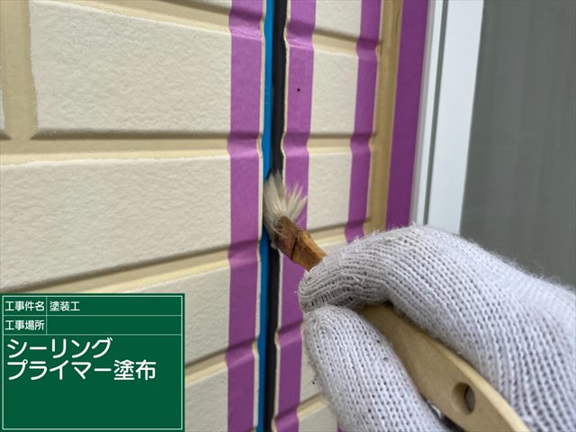 シーリングが密着するようプライマーを塗布し、新しいシーリングを打ち込みます。