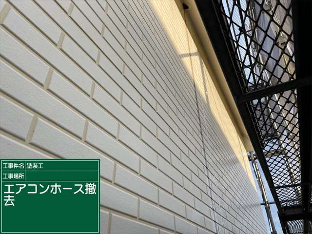 使用していないエアコンホースを撤去して外壁塗装をしていきます。