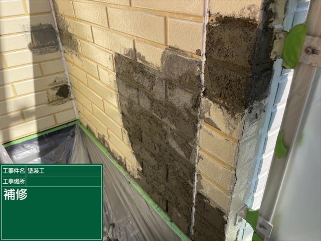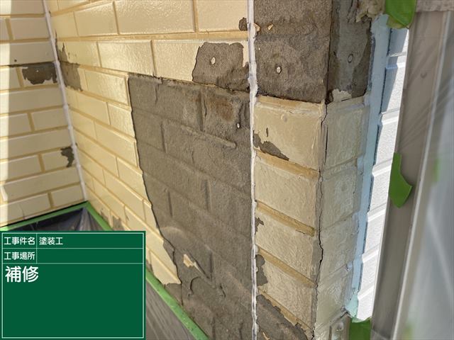 石岡市の外壁塗装現場、凍害被害の補修をおこないます。