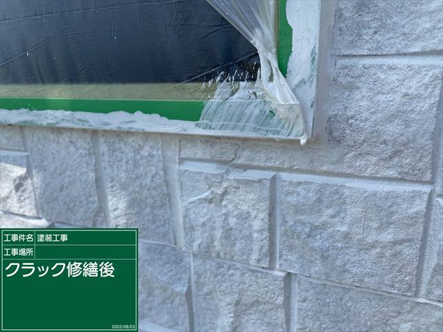 下塗りの前におこなうことが多いクラック補修ですが、今回は下塗りの後におこないました。