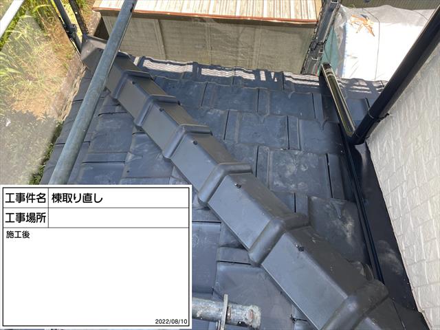 漆喰を整えて棟瓦を敷き直したら完了です。