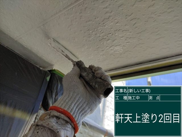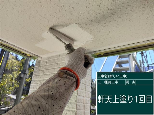 今回は通常の劣化の範囲なので軒天専用の上塗り塗料のみでおこないます。