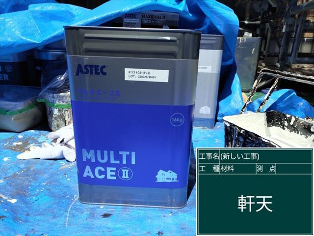 石岡市現場で使用した軒天用塗料「マルチエースⅡ」です。