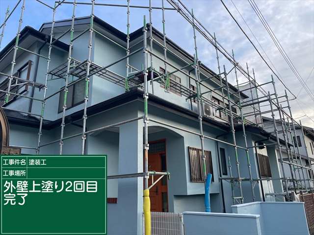 上塗りの2回めも終わり、外壁塗装が完了しました。