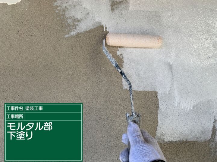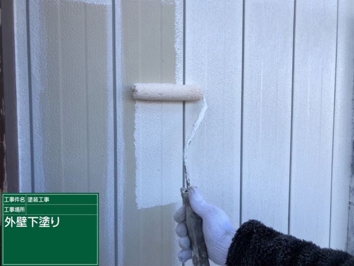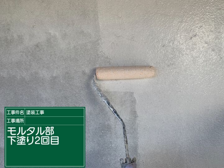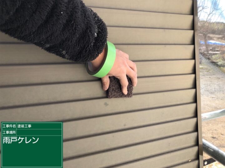 外壁も、まずケレンから行います。汚れやカビなど、更に古い塗膜までしっかりと擦り落としていきます。この作業を怠りますと、新しく塗る塗料の早期剝離に繋がりますので丁寧に施工していきます。