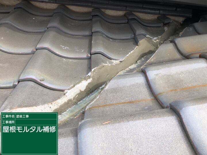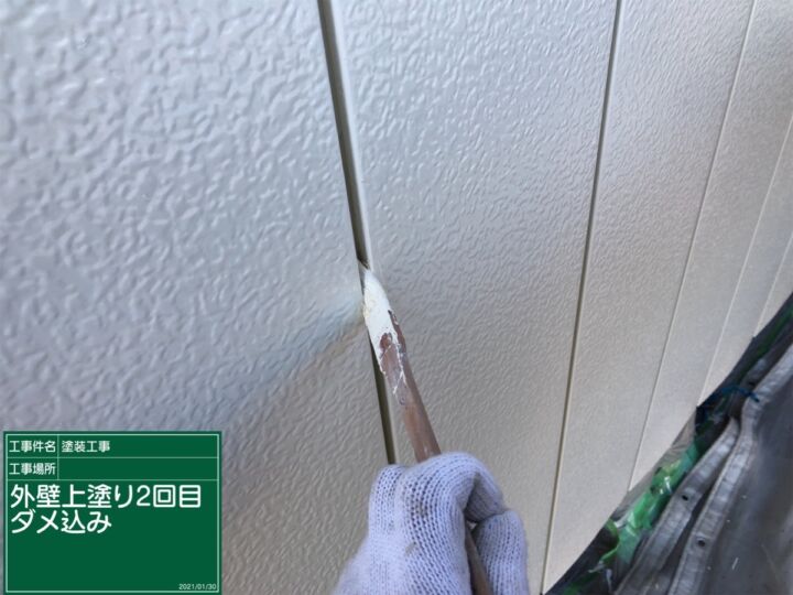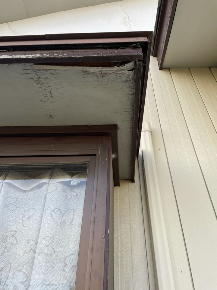外壁と付帯部のつなぎ目です。こちらも、雨水の侵入を防ぐ為、補修剤を充填していきます。