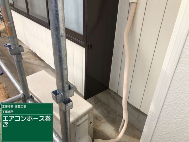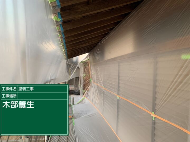 吹き付けで行う箇所がありましたので、塗装後の箇所や汚してはいけない箇所を保護する為、また塗料の飛散防止に養生を行います。
