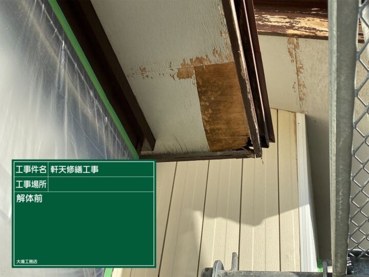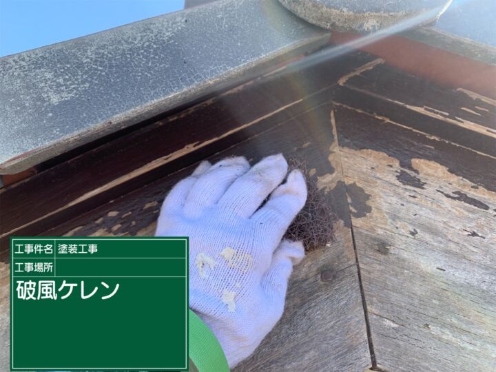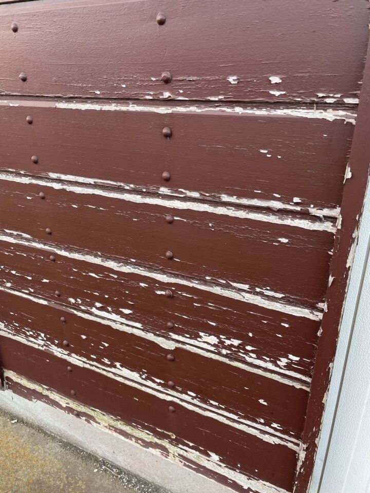 汚れや塗膜の劣化が顕著に見られます。塗膜だけでなく、素材自体も浮いていたり剥がれている箇所もありました。
