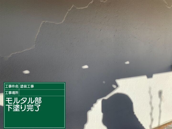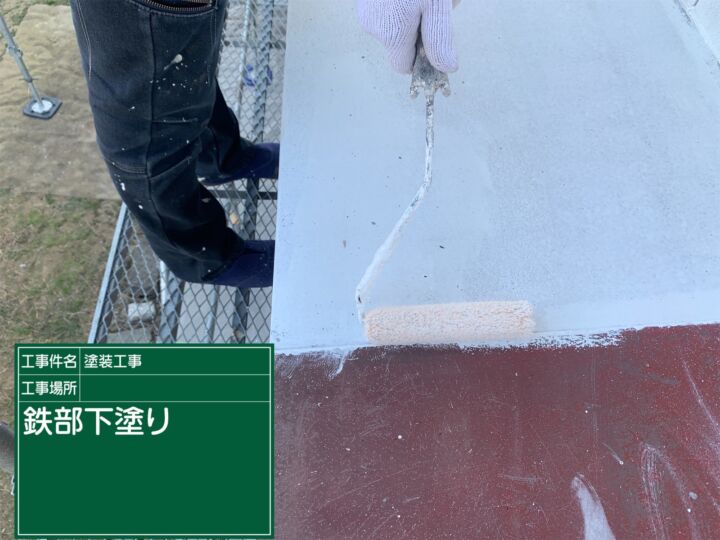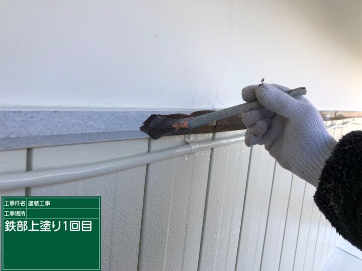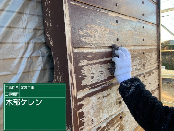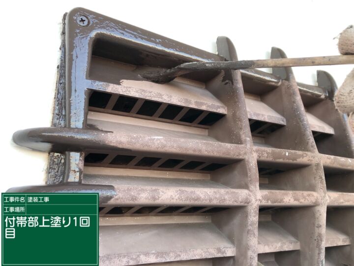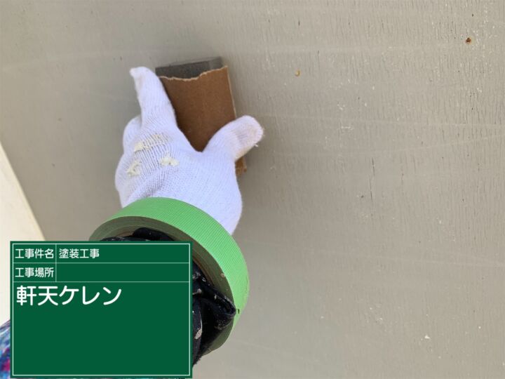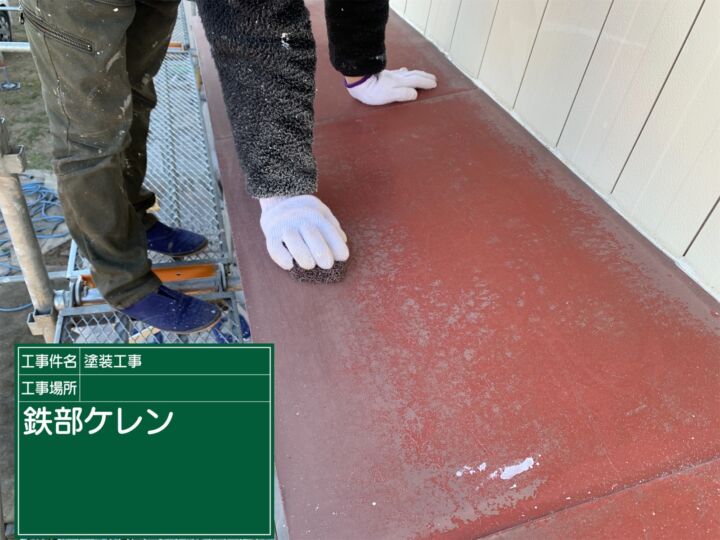 補修後、ケレン作業で下地を整えていきます。 汚れを落とすだけでなく、細かなキズを付けることにより、新しく塗る塗料の密着性を高めていきます。