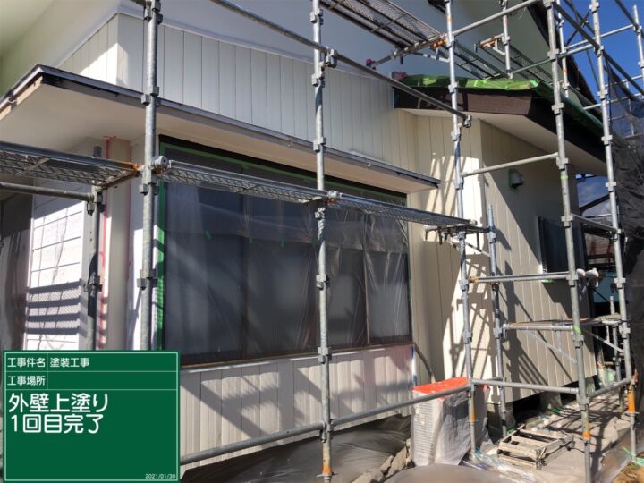 - 《外壁》セラマックスSi(上塗り)サーモテックメタルプライマー(下塗り)、《軒天》マルチエース、《破風板》フッ素UVコート、《木部》キシラデコール、《木部戸袋》フッ素UVコート、《鉄部・水切り》フッ素UVコート(上塗り)サーモテックメタルプライマー(下塗り)