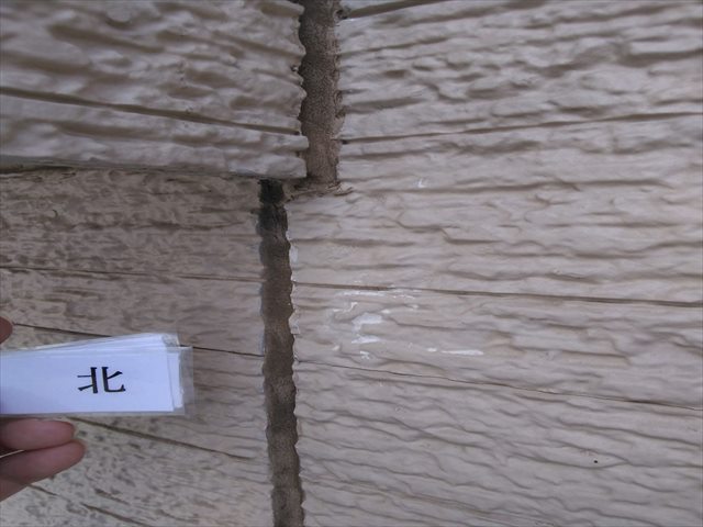 新築時には隙間なく張り合わせてあったサイディングパネルですが、経年で徐々にズレていきます。