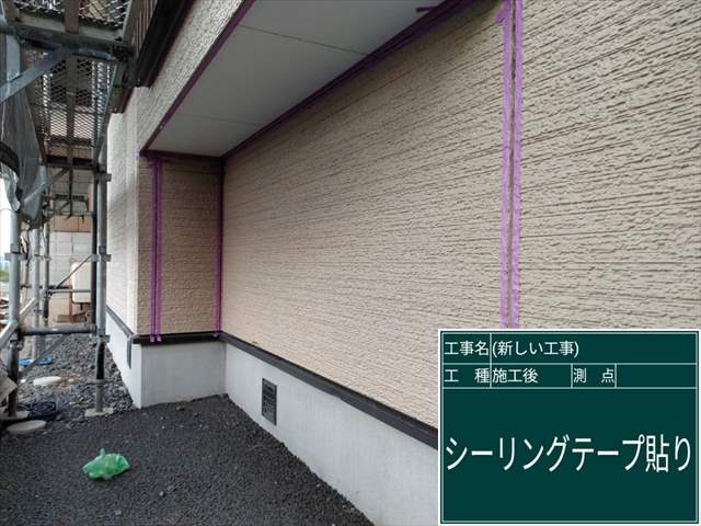 マスキングテープを貼って古いシーリングを撤去していきます。