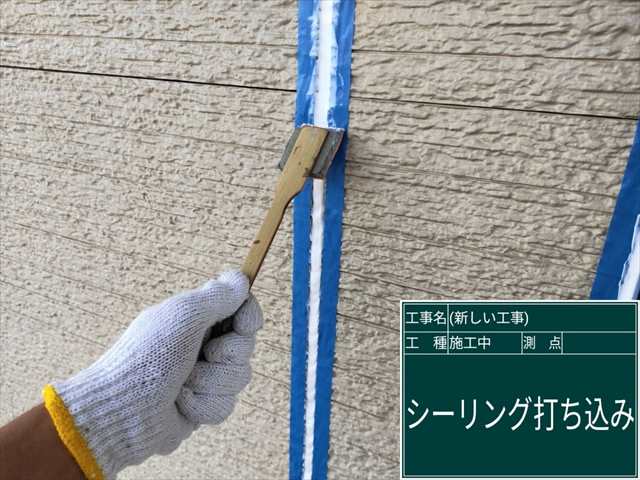 プライマーをしっかりと塗布して、新しいシーリングを打ち込んでいきます。
