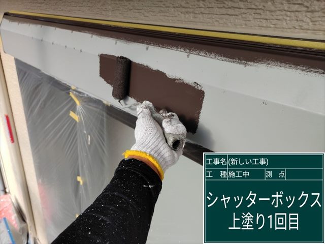 シャッターボックスも金属のため、下塗りにサビ止めをして塗装をしていきます。