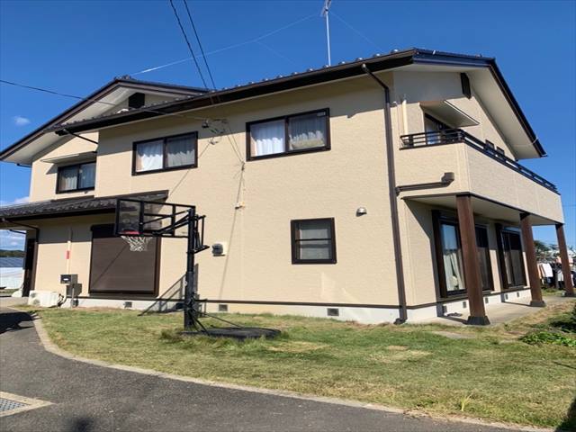 石岡市、外壁にボールがぶつかって破損!補修と光触媒の外壁塗装