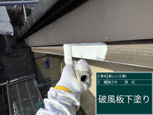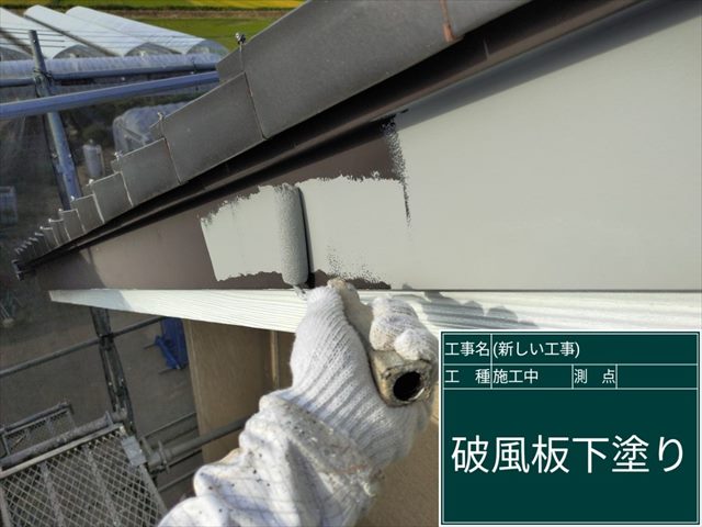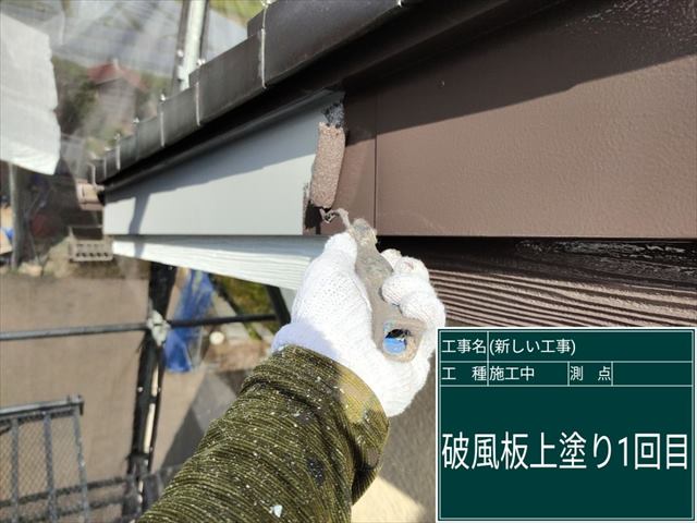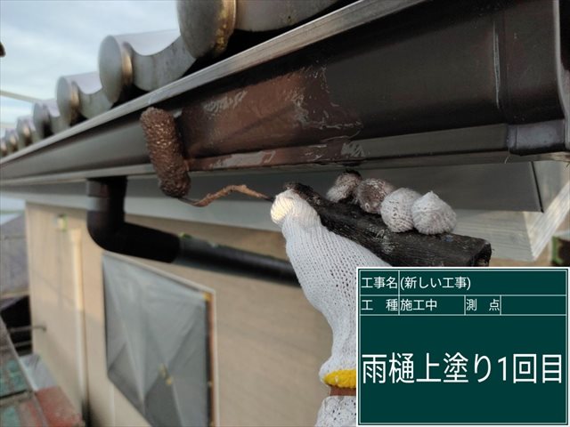 雨樋は破風板についているので、同じタイミングで塗装をおこないます。
