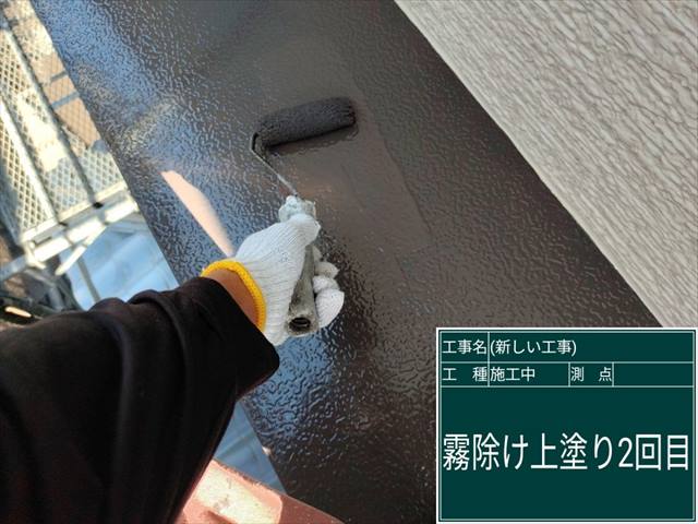 霧除けは下塗りでサビ止めをしてから上塗りをおこないます。