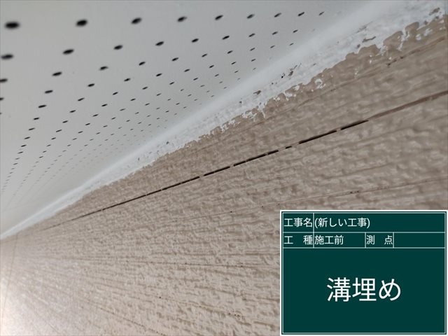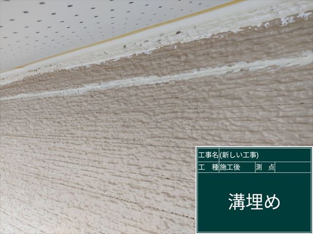 外壁に出来た溝埋めも完了して、塗装できる状態であることを確認しました。