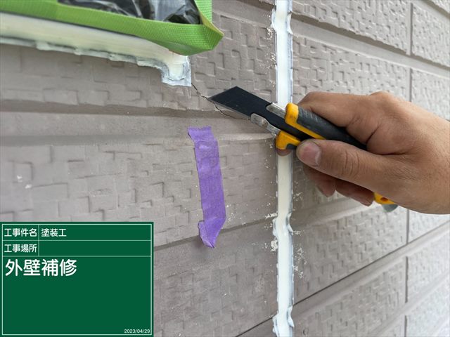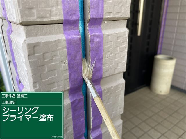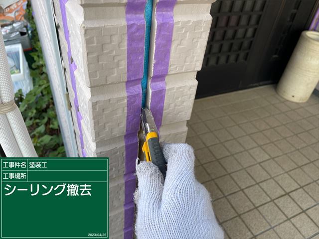 古いシーリングを撤去して、プライマーを塗布していきます。