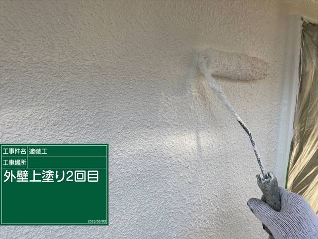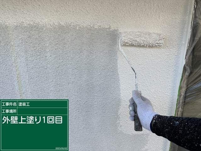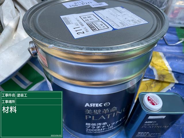 上塗りは超低汚染プラチナリファインのトゥルーホワイトで塗装をしていきます。
