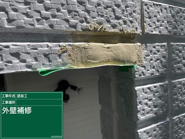 サンシェードで割れてしまった外壁部分はパテで補修をしていきました!