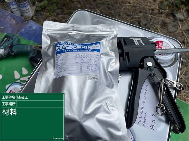 外壁のヒビ割れ補修には、スムースエポと場所によりシーリングをつかっていきました。