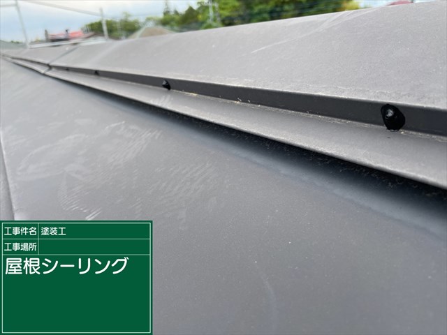 屋根板金にあいた隙間と浮いた釘頭の補修をおこないました。