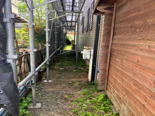 施工開始!足場設置に倉庫が干渉?!