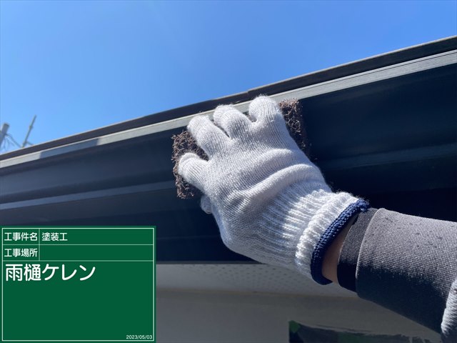 雨樋の塗装もケレン作業からはじめていきます。